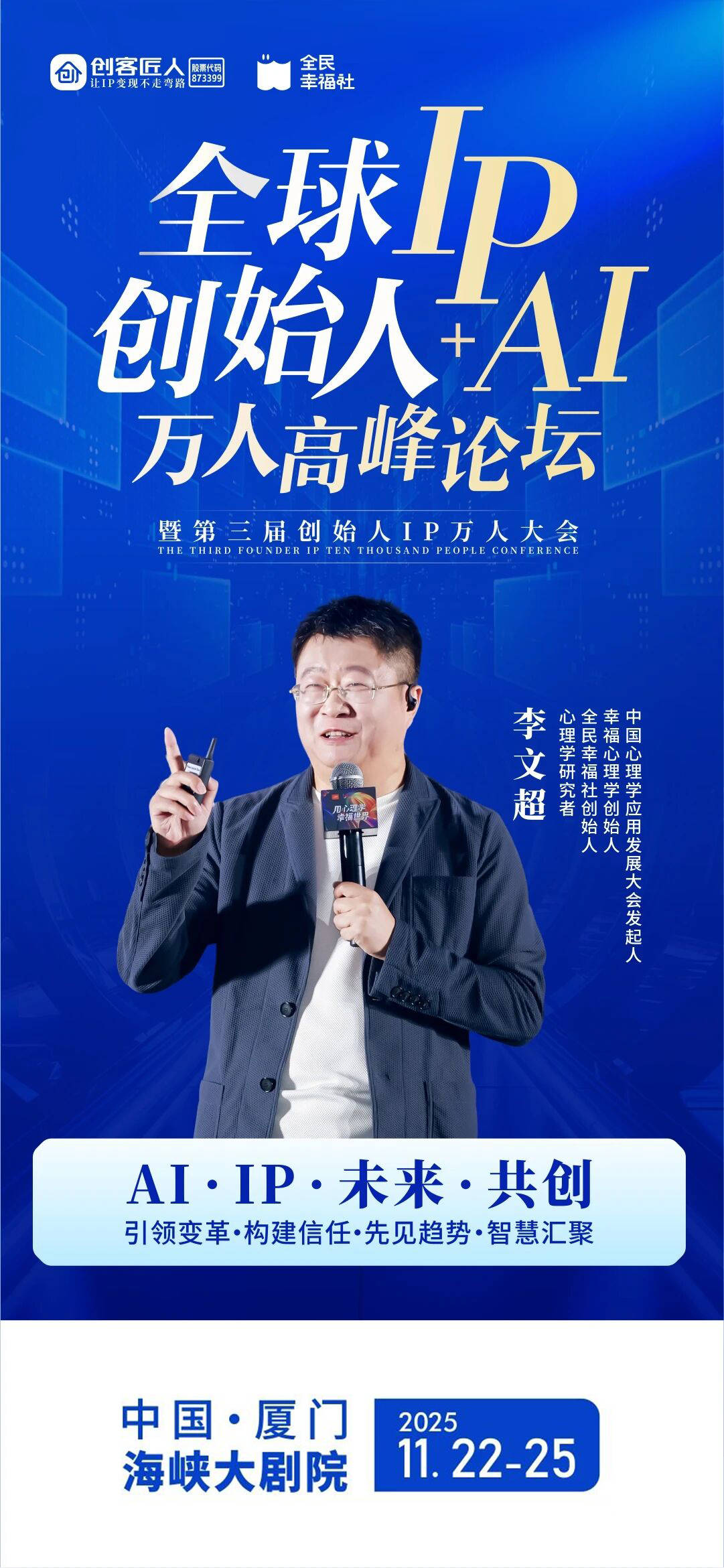 重磅官宣 | 幸福心理学创始人李文超老师 出席2025 IP+AI万人峰会