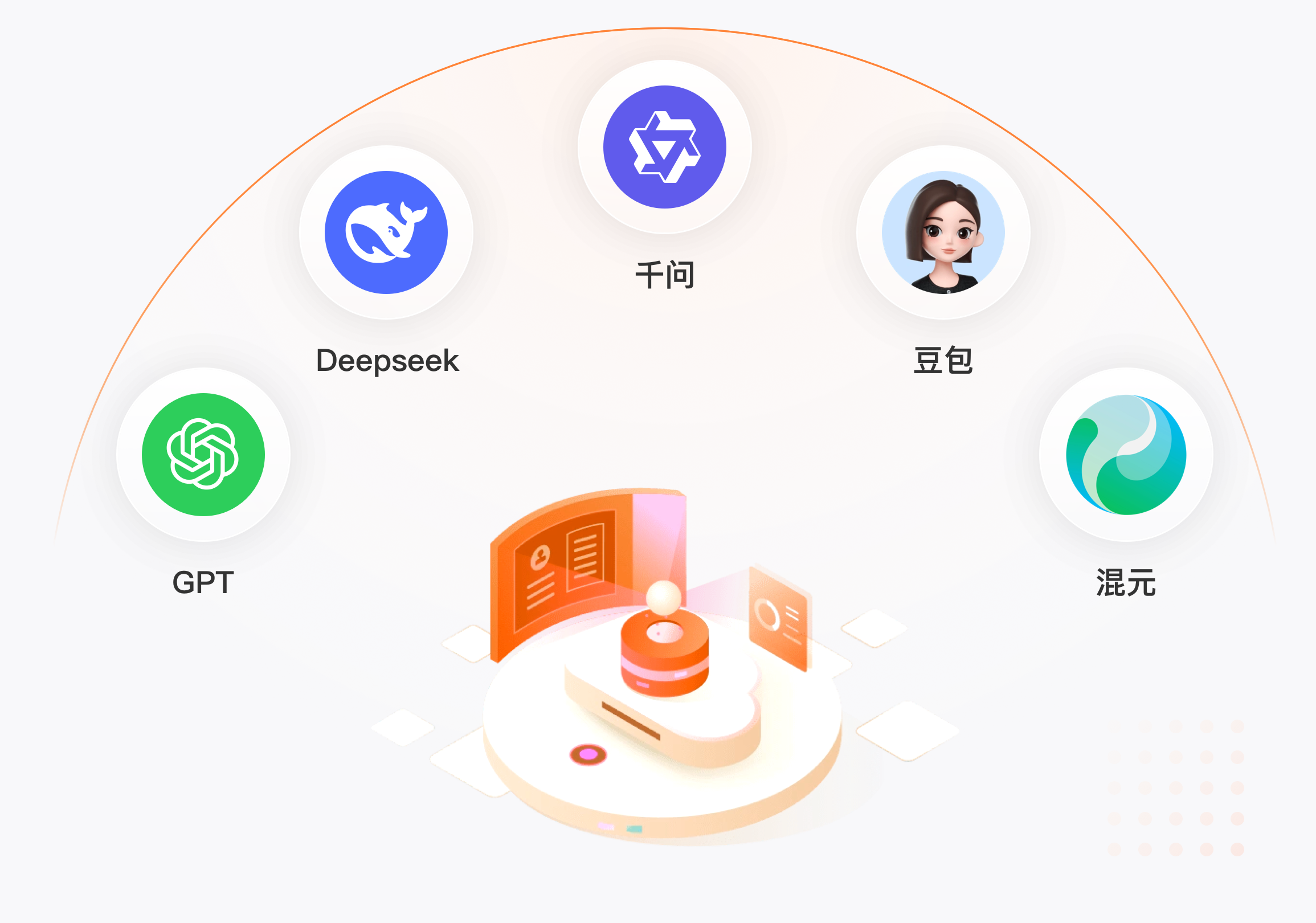 支持GPT、Deepseek、千问、豆包、混元等多模型选择,自动帮你匹配最精准、性价比最高的大模型