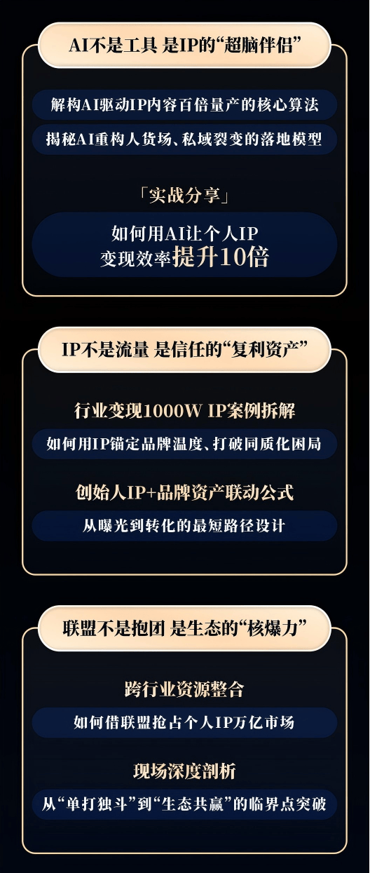 他们不仅会分享IP转化的核心模型,还将结合AI技术,为大家展示IP变现效率翻倍的真实案例。