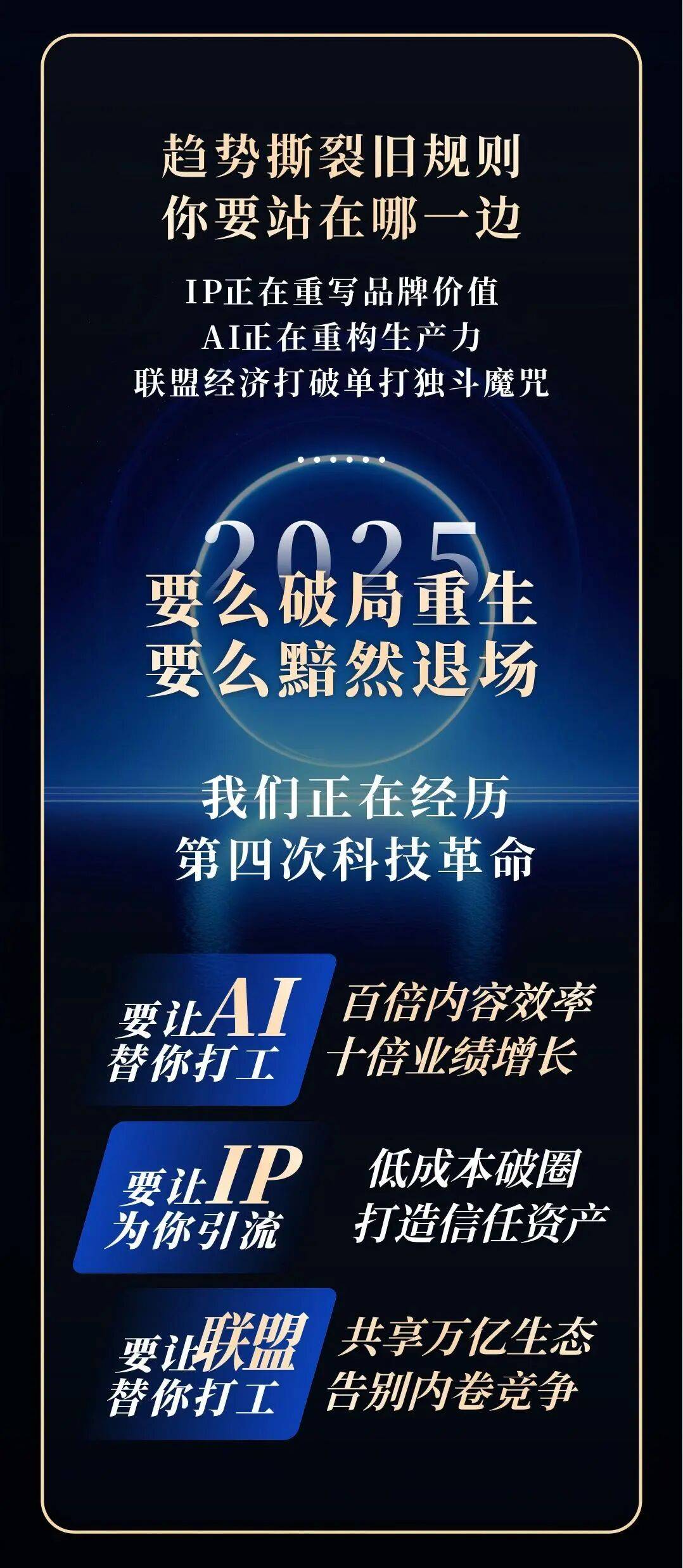 与此同时,2025将迎来技术与内容融合的黄金时代——从人工密集型生成到人工智能驱动,从低成本流量到信任流量再到高精准转化,这是IP变现的模式革新,也是你的黄金窗口期!